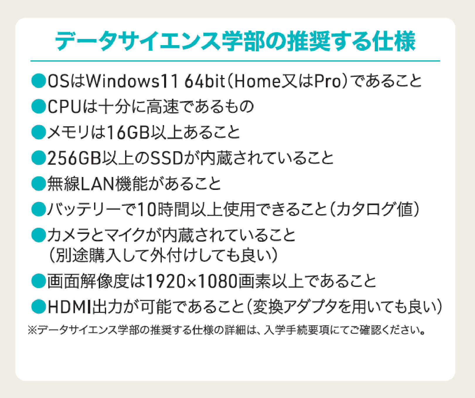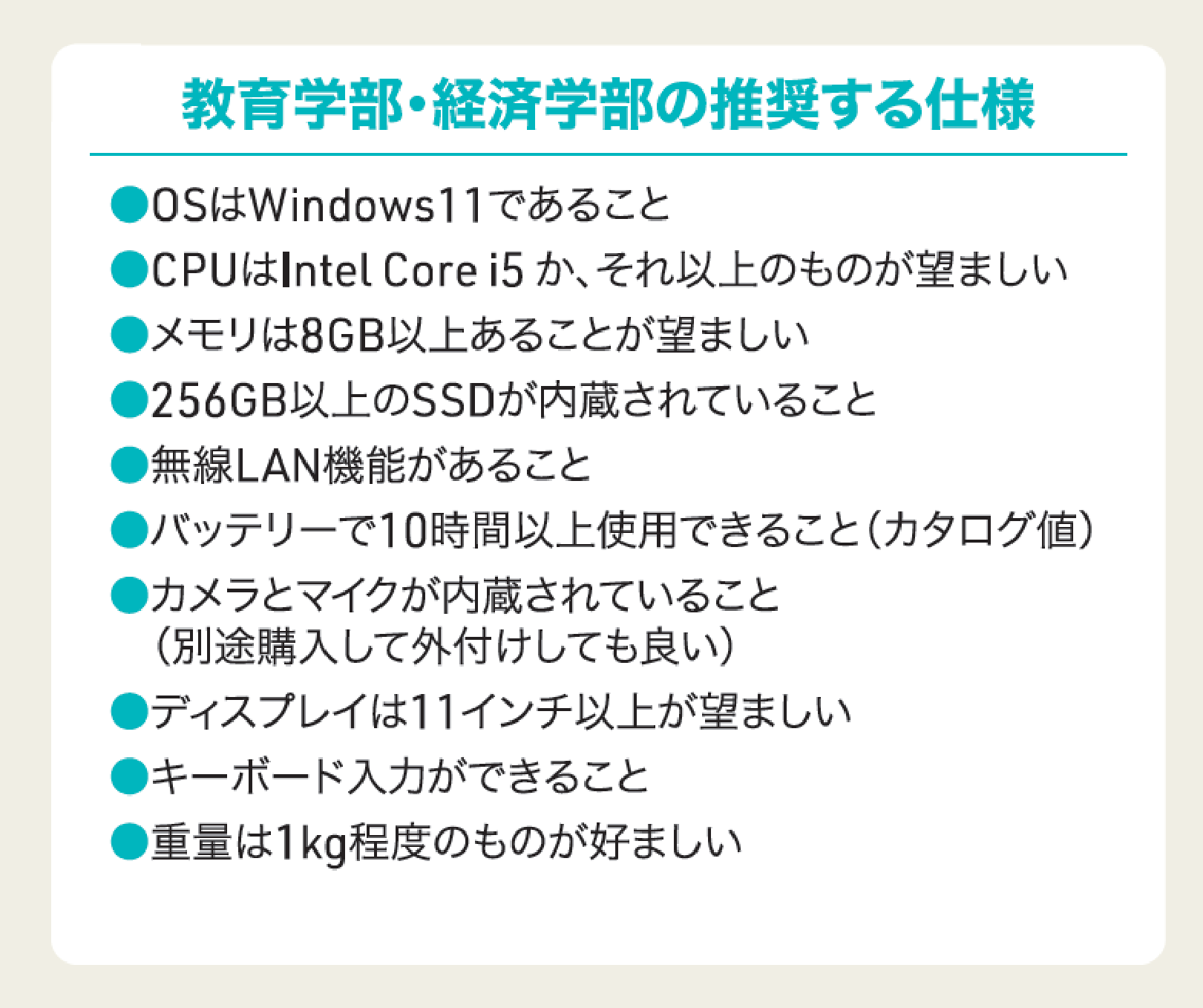 大学が推奨する仕様